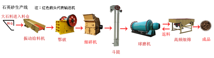 這套生產(chǎn)線有振動給料機、顎式破碎機、細(xì)碎機、球磨機、提升機、振動篩和皮帶輸送機等設(shè)備組合而成。
